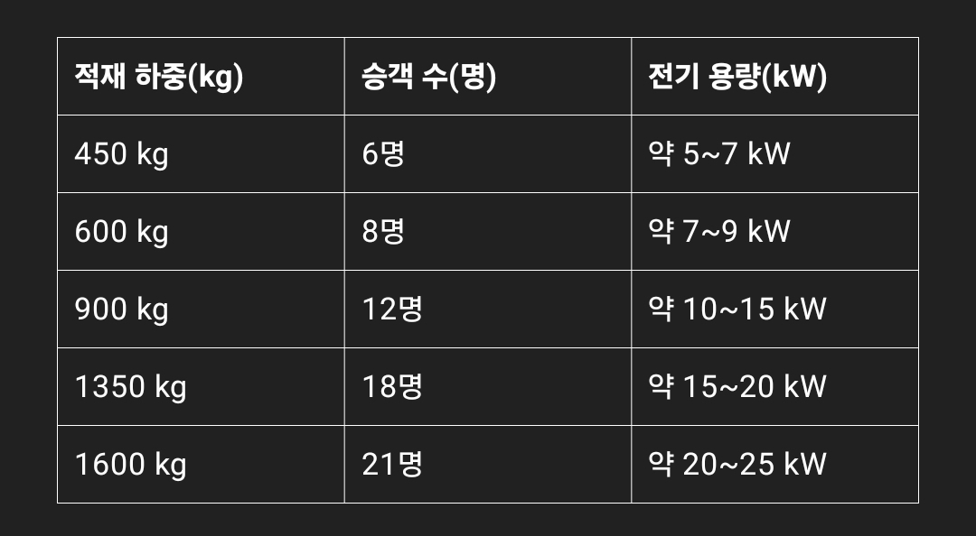 1. 일반적인 승강기 전기 용량
