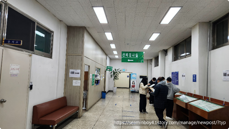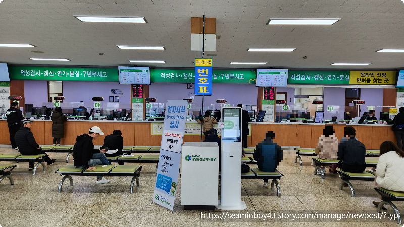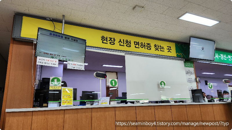 들어가서 번호표를 뽑고 기다립니다. 사람이 많아서 10분정도 기다렸는데 창구에 가니 면허 적성검사 기간도 되었다고 합니다. 대형면허도 있어서 그런지 신체검사도 받아야 한다고 합니다.