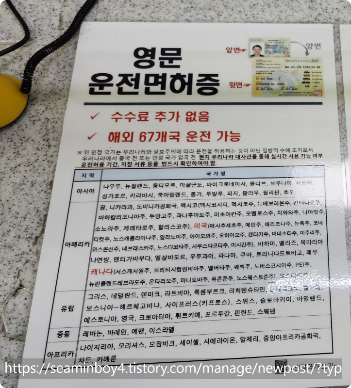 영문 면허증이 19년도부터 시작되었는데 생각보다 되는 나라가 많이 있습니다. 좋습니다.