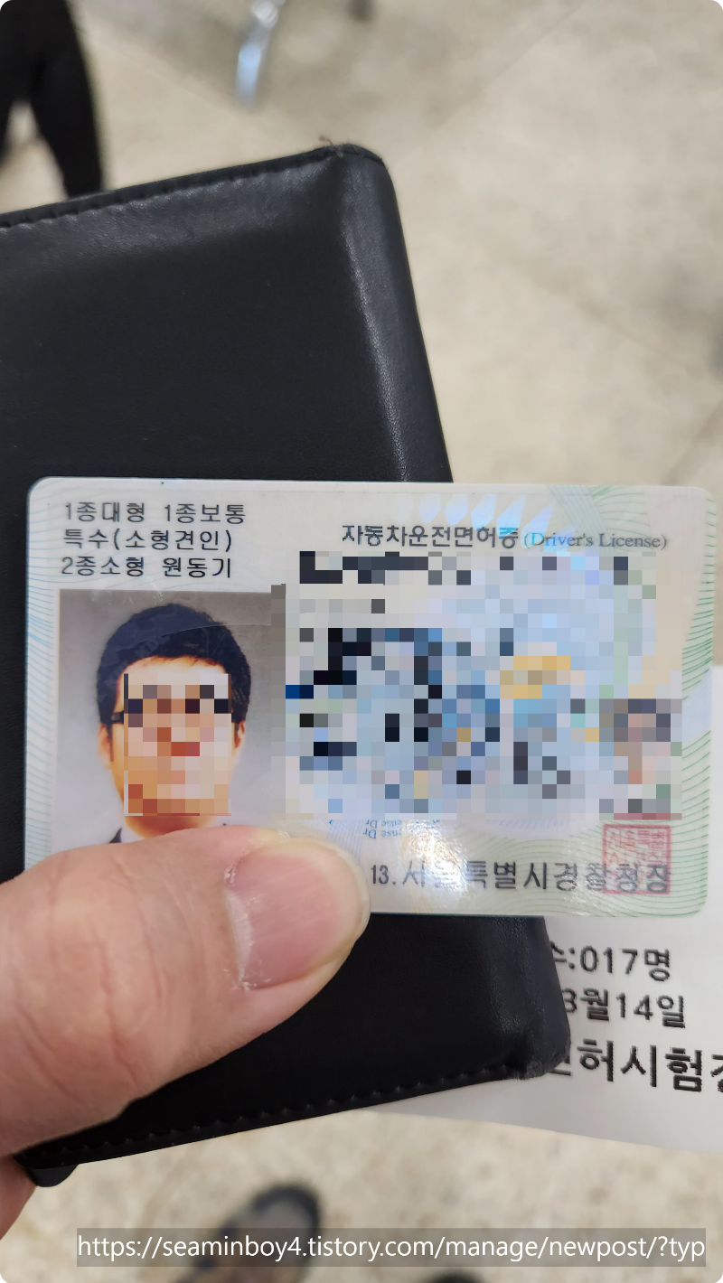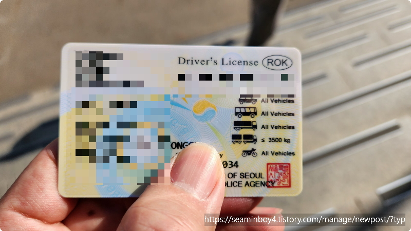 새로 발급받은 면허증 뒷면입니다. 영문명과 면허종류 번호등이 나와있습니다. 이게 뭐라고 만들고 나오니 여행 갈 생각에 살짝 기분이가 좋아집니다.