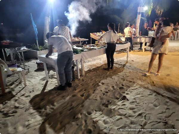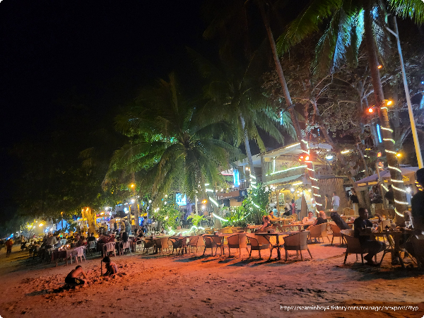 친구들과 헤난알로나 비치 해수욕후 숙소 정리후 외부로 저녁을 먹으러 나갑니다. 헤난알로나 비치 해변은 야시장이 열리는 장소입니다. 걸어가보니 500-600m 정도 야시장 거리가 형성되어 있는듯합니다. 헤난 알로나 비치 호텔 앞쪽이 외국 관광객들이 많아서 야시장이 가장 많이 형성되어 있는듯합니다.