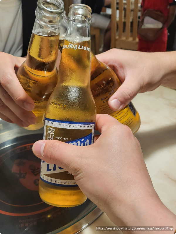 그리고 맥주는 산미구엘입니다. 맥주는 로컬식당 가면거의 80패소 1000원 정도이고 100패소 하는곳도 있었습니다.(마트에서 사면 50패소) 이번식당에서는 맥주를 좀 많이 먹어서 2000 패소 정도 비용이 나왔습니다. 46000원 정도 비용이 나왔는데 점식에 먹은것과 비교하면 음식도 괜찮았고 맛도 있었습니다.짜지 않아서ㅎㅎ
