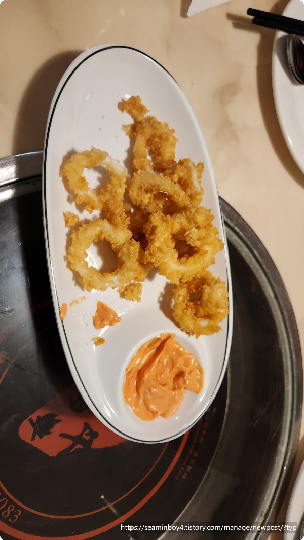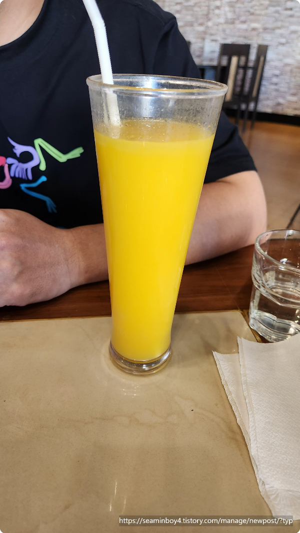 음식은 참치뱃살구이. 그리고 꼬치하고... 뭐라더라 이름이기억나지 않습니다. 그리고 진하지 않는 망고주스 3잔